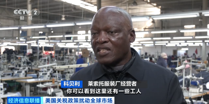 莱索托服装厂经营者科贝利:很多工人已经被解雇了,因为我告诉你10%的影响已经产生了,你可以看到这里还有一些工人,这是因为我们现在只专注于出口南非市场,对莱索托来说,高关税意味着我们必须放弃美国市场。